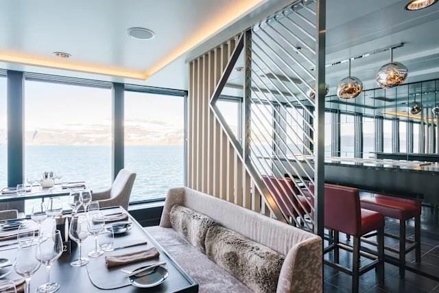 Relax and rejuvenate in the elegant Explorer lounge & bar. Sink into a comfortable armchair and gaze out at the magnificent views through the floor-to-ceiling windows.